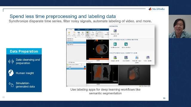 - Observe cómo los flujos de trabajo de MATLAB y Simulink pueden acelerar la implementación satisfactoria de IA con ejemplos de casos prácticos: