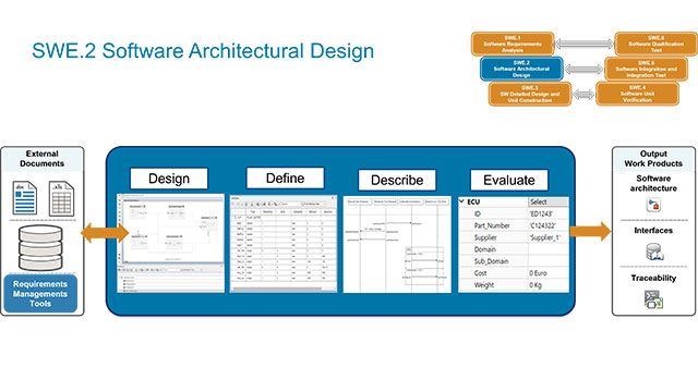 La amplia adopción del diseño basado en modelos y la ingeniería de sistemas basada en modelos para procesos de ingeniería y prácticas básicas de ASPICE (Automotive SPICE) se puede atribuir a las prestaciones de automatización y simulación. Por ejemplo, los enfoques que utilizan el diseño basado en modelos permiten realizar estudios comerciales de manera efectiva y eficiente en etapas iniciales del proceso de diseño y establecer un hilo digital (2:36) con total trazabilidad entre todos los artefactos de un proyecto, incluidos los de especificación de requisitos, diseño, implementación, verificación y validación. Estas prestaciones permiten al equipo de ingeniería centrarse en desarrollar innovaciones y productos de vanguardia y aprovechar el soporte de herramientas para lograr aspectos de calidad de procesos tales como integridad, conformidad y exactitud.