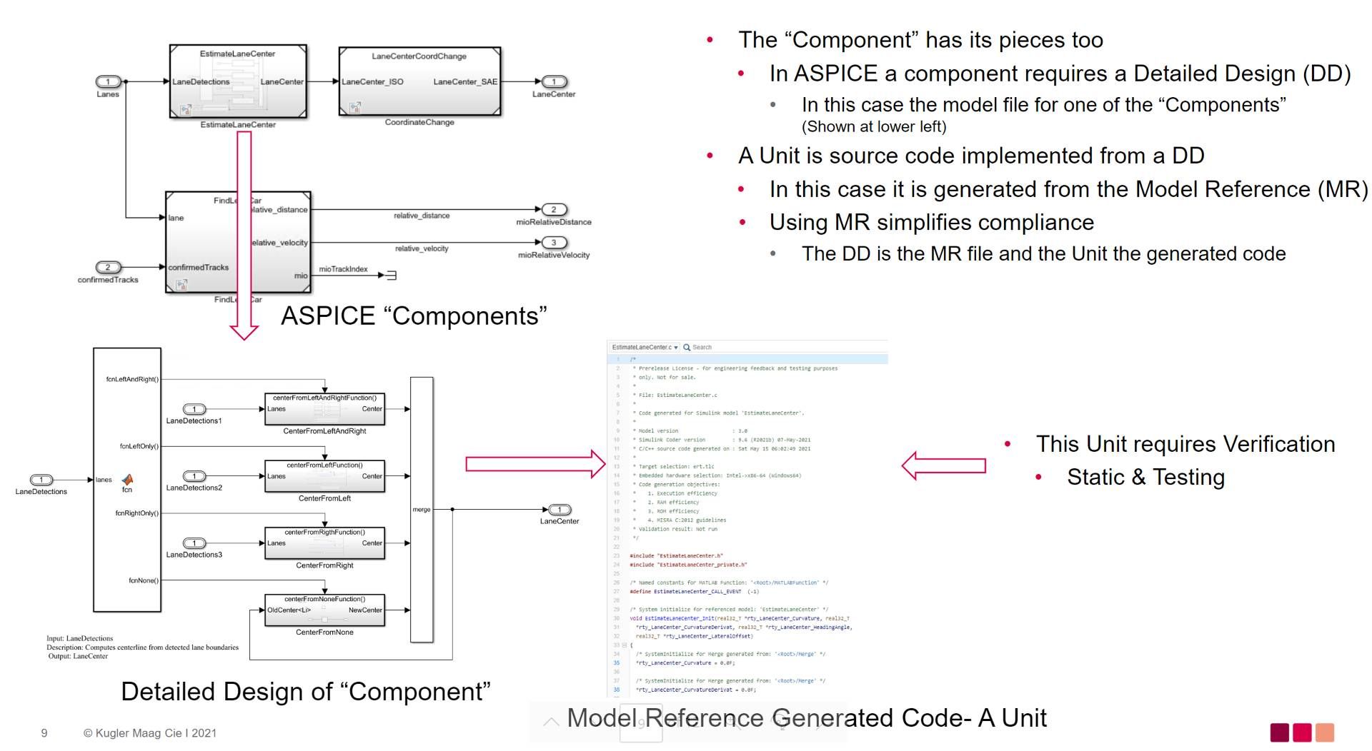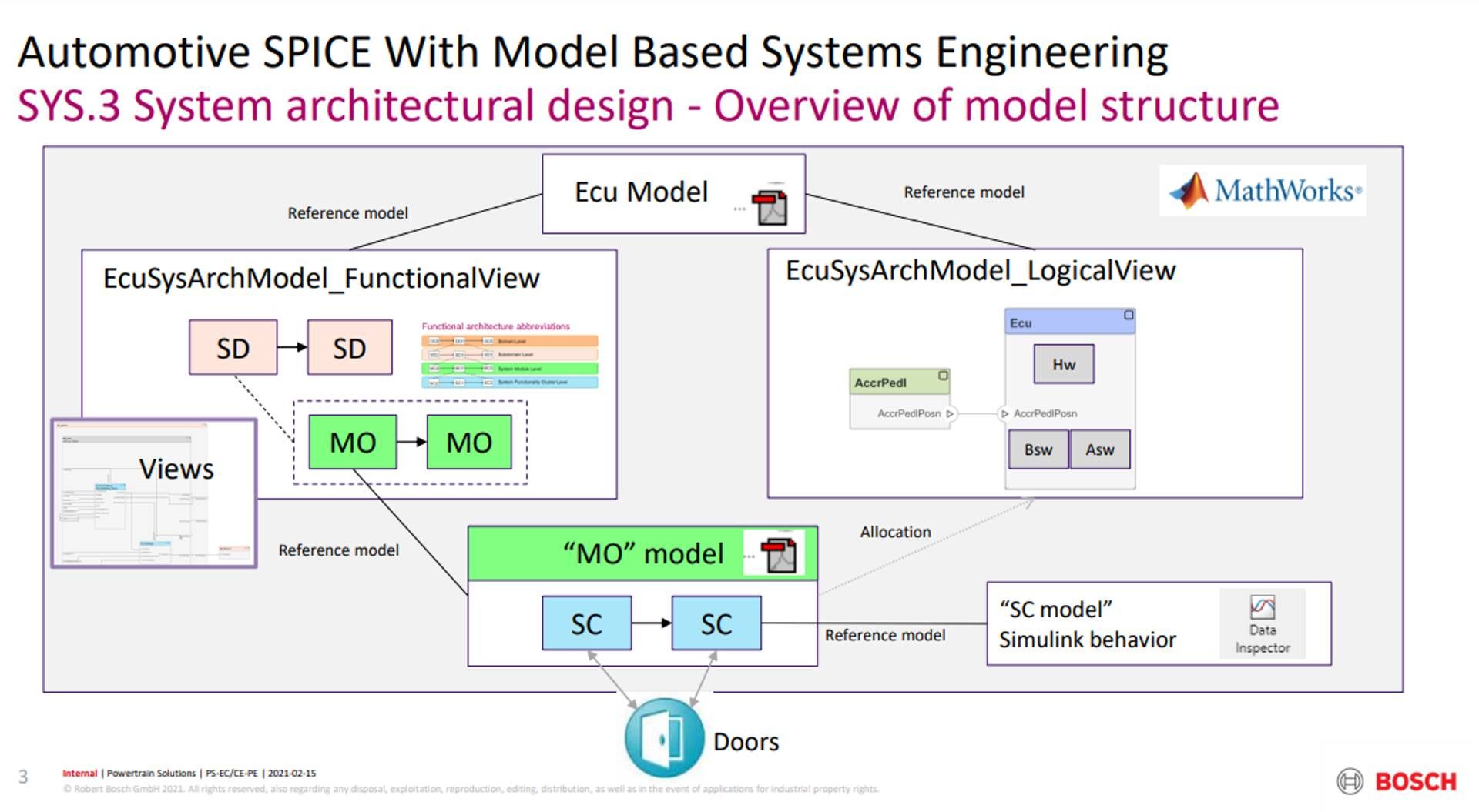 Las organizaciones de automoción en toda la cadena de valor de automoción utilizan el diseño basado en modelos y la ingeniería de sistemas basada en modelos con Simulink para desarrollar productos eléctricos o electrónicos (E/E) que cumplan y superen los requisitos de los clientes, el mercado y las estandarizaciones. En lo relativo a ASPICE (Automotive SPICE), los enfoques basados en modelos con Simulink brindan un amplio espectro de soporte a los procesos de ingeniería. Esto se resume en un documento de asignación de herramientas que forma parte de IEC Certification Kit.