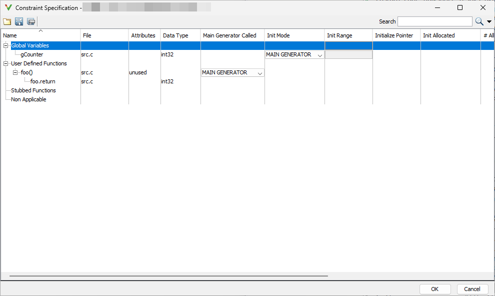 • In the Global Assert Range column, enter the range in the format min..max. min is the minimum value and max the maximum value for the global variable.