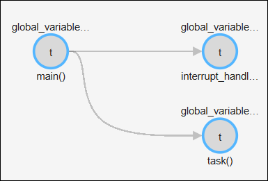 • The first graph shows how the tasks access the variable. For instance, the task interrupt_handler calls a function interrupt that writes to the shared variable shared_var.