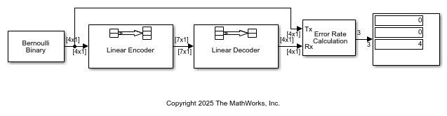 This example shows how to model a simple encoder and decoder using appropriate vector lengths for the code and message.