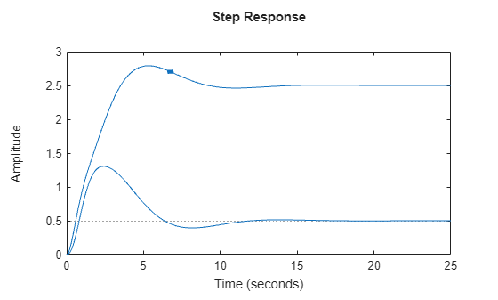 If sys is an array of models, the function plots the responses of all models in the array on the same axes. See Step Response of Systems in a Model Array.