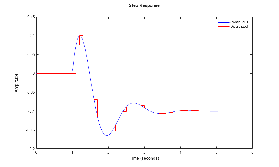 step(G,'b',Gd,'r') legend('Continuous','Discretized')