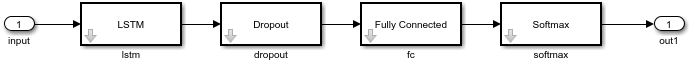 En este ejemplo, deténgase en LSTM y haga clic en Open. Para exportar la red a Simulink, seleccione Export > Export to Simulink. En el cuadro de diálogo Export to Simulink, seleccione Export as en Multiple Layer Blocks. Seleccione una ubicación para guardar el archivo de Simulink con los parámetros de red y, después, haga clic en Export. Si durante la exportación la red no está inicializada, la app intenta inicializarla.