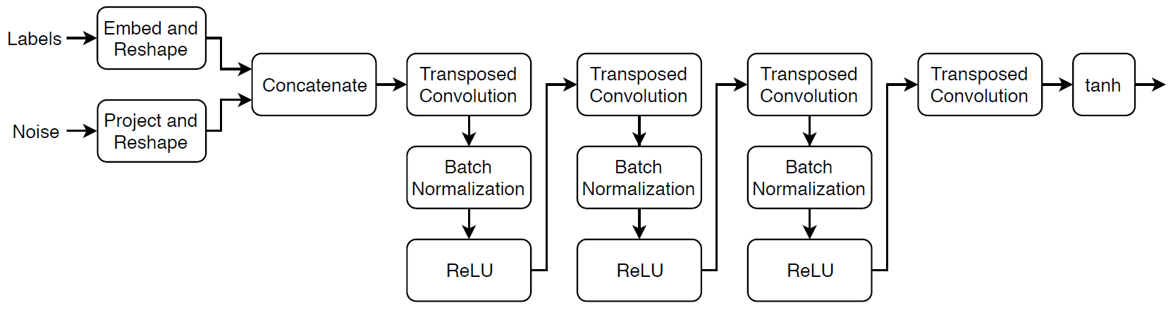 Idealmente, estas estrategias dan como resultado un generador que genera datos convincentemente realistas que corresponden a las etiquetas de entrada y un discriminador que ha aprendido representaciones de características fuertes que son representativas de los datos de entrenamiento de cada etiqueta.
