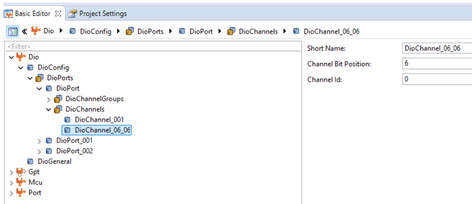 The channel identifier is set to DioChannel_06_06, as defined in the configuration description file
