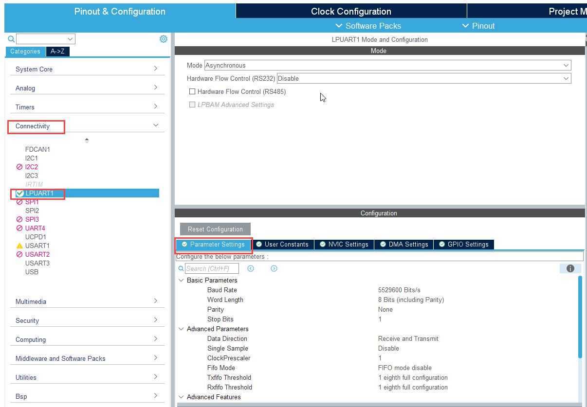 Configure a USART/UART module to enable serial communication for external mode. this example uses the LPUART1 module on the STM32G474RE Nucleo board.