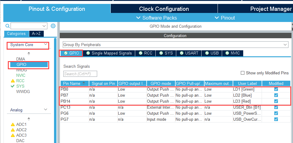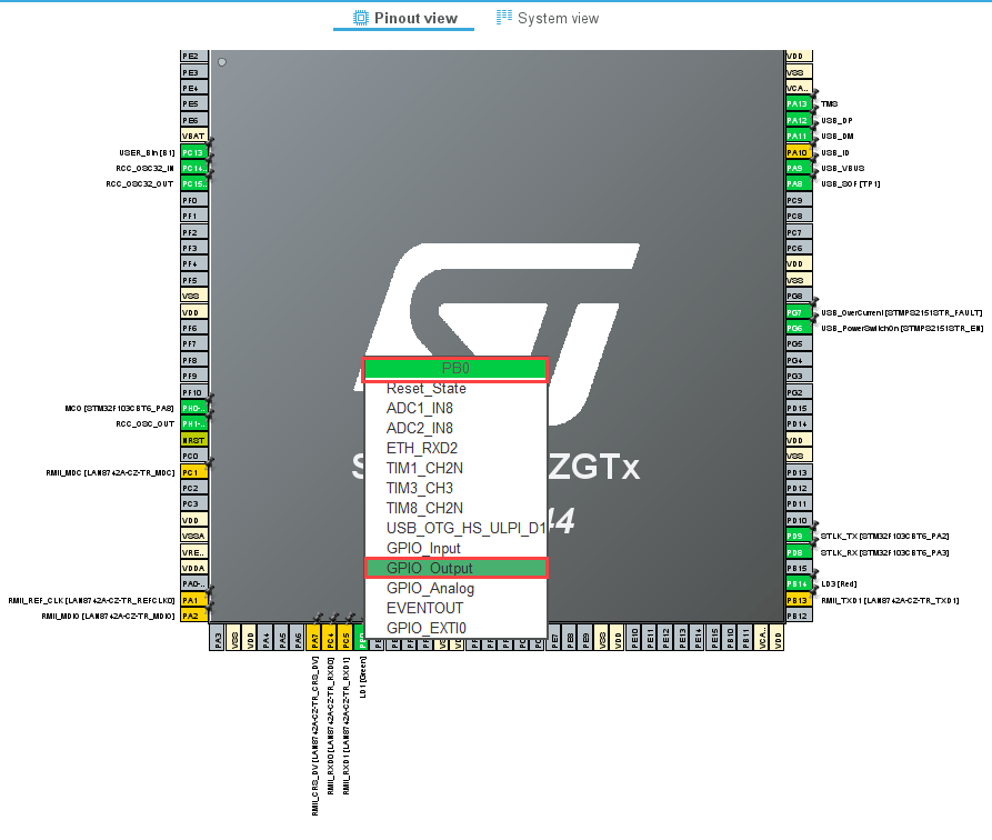 2. Configure the pin (PB0) as GPIO_Output in your STM32CubeMX project to toggle user LED.