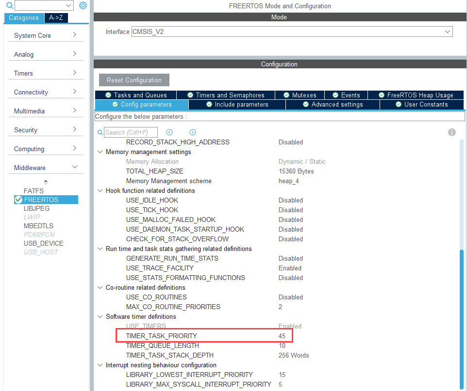 FreeRTOS STM32CubeMX Project Configurations