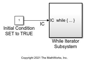 The model contains a While Iterator Subsystem block that repeats execution of the contents of the subsystem during a simulation time step.