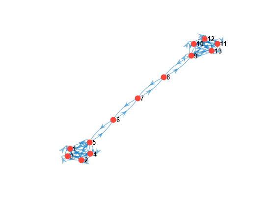 Plot a digraph of the Markov chain mc. Display the transition probabilities.
