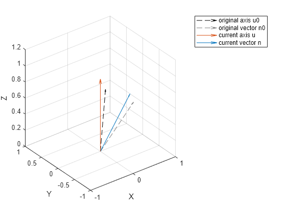 uf = double(u0); c = cos(double(theta)); s = sin(double(theta)); c1 = 1 - c; R = [c+uf(1)*uf(1)*c1, uf(1)*uf(2)*c1-uf(3)*s, uf(1)*uf(3)*c1+uf(2)*s; ... uf(1)*uf(2)*c1+uf(3)*s, c+uf(2)*uf(2)*c1, uf(2)*uf(3)*c1-uf(1)*s; ... uf(1)*uf(3)*c1-uf(2)*s, uf(2)*uf(3)*c1+uf(1)*s, c+uf(3)*uf(3)*c1]; nf = R*double(n0); error = double(n)-nf;