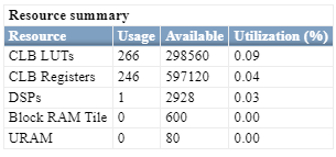 Synthesis Results — Tool: Xilinx Vivado, Device: Zynq UltraScale+
