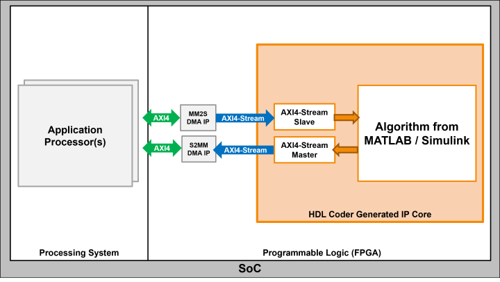 For example, this image shows how you can use an AXI4-Stream interface between multiple IP cores.