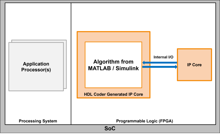 Use the internal I/O interface to connect directly to other IP cores in the reference design. The internal I/O interface is defined by the reference design. When you map to an internal I/O interface, HDL Coder™ connects the other IP cores with a wire.