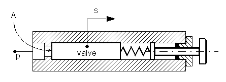The following example shows a model of a pressure-relief valve built using the Hydraulic Single-Acting Valve Actuator and Orifice with Variable Area Round Holes blocks.