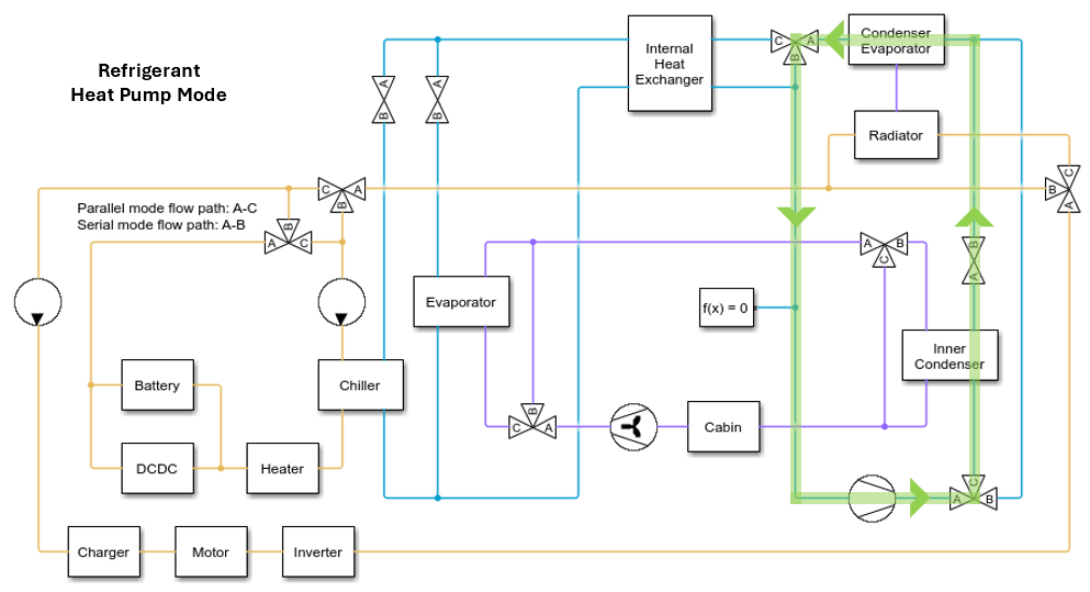 For more information on electric vehicle thermal management with a subcritical R-134a refrigerant, see Electric Vehicle Thermal Management with Heat Pump.