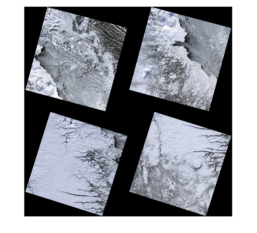 Four image regions in an aerial image of Canada that are stitched in this example.