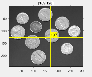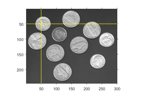 La función drawcrosshair crea un objeto Crosshair que especifica la posición de una región de interés (ROI) de retículo. Puede crear la ROI de forma interactiva dibujándola sobre una imagen con el ratón o de forma programática utilizando argumentos de nombre-valor. También puede especificar la apariencia inicial y el comportamiento de la ROI.