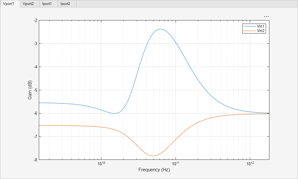 frequency = (0:100)*1e9; data = generateSParameterData("TCoil",frequency, ... ["Vport1","Iport1","Vin1","R1"], ... % S-Parameter port 1 ["Vport2","Iport2","Vin2","R2"]); % S-Parameter port 2