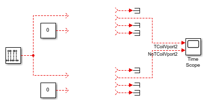 Open the model TCoilTestbench. This model contains input and output connections for you to compare two circuits.