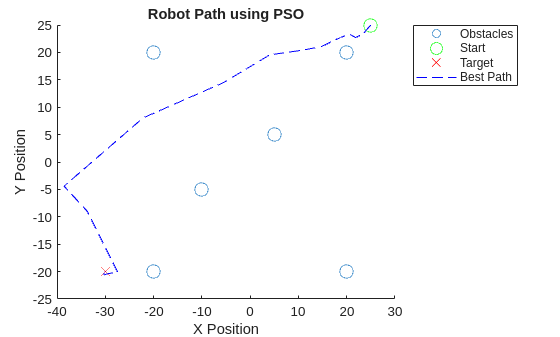 legend("Obstacles","Start","Target","Best Path",Location="bestoutside");