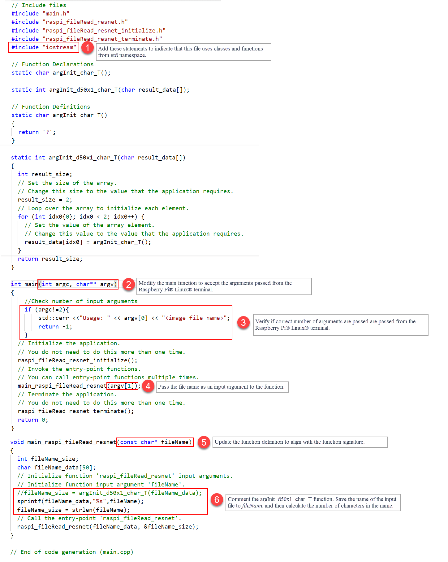 deploy(board,'raspi_fileRead_resnet');Step 4: Edit C++ Main File to Accept Input from Command Line of Raspberry Pi