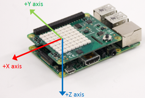 The axis information of the IMU sensor on SenseHAT is as shown.