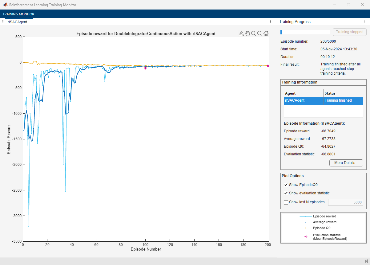 td3TngRes = train(td3Agent,env,trainOpts,Evaluator=evl);