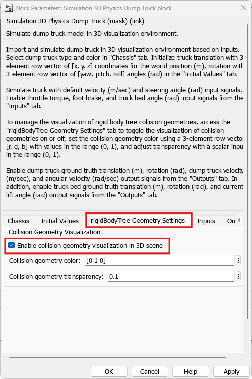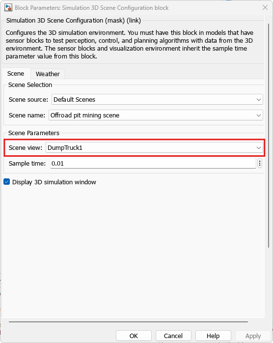 Default Scenes.Set the enabled Scene name parameter to Offroad pit mining scene.