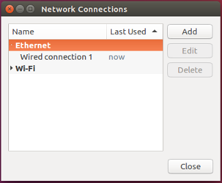 Select the Wired connection and click Edit to modify the adapter setting.