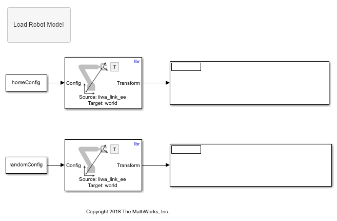 Abra el modelo. Si es necesario, utilice el botón de callback Load Robot Model (Cargar modelo de robot) para volver a cargar el modelo del robot y los vectores de configuración.