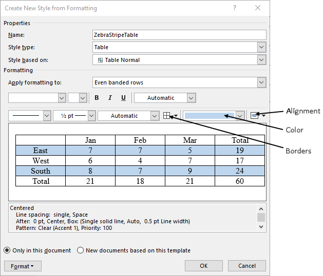Create a Zebra-Striped Table by Using a Microsoft® Word Template