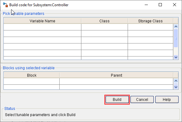 b. In the Build code for SubsystemController dialog box, click Build.