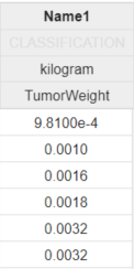 In the resulting Name1 column, double-click the Expression cell and enter TumorWeight, to duplicate the existing TumorWeight column.