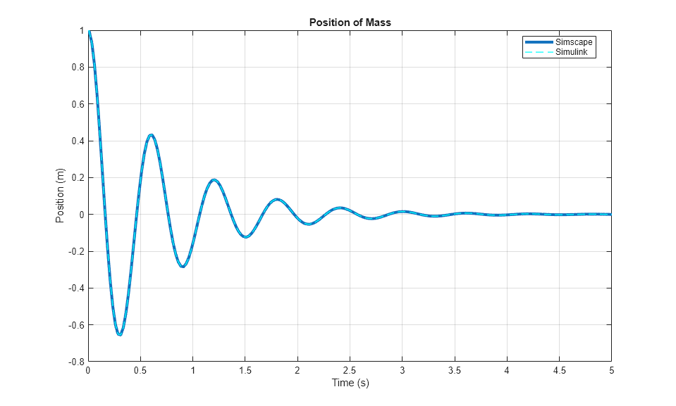 Este ejemplo compara un modelo de masa-resorte-amortiguador que utiliza conexiones físicas y bloques de Simscape™ y con un modelo que utiliza señales y bloques de Simulink®.