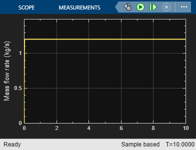 Simulate the model and view the baseline mass flow behavior in the Mass Flow Rate block.