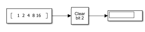 This examples shows how to use the Bit Clear block to set the value of a specified bit index to 0.