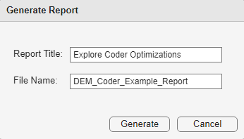 Coder provides many settings and optimizations for improving your generated code, such as reducing memory consumption. In the process of optimizing your design for deployment, you may need to try out several different combinations of settings on the model and understand their impact on generated code in order to arrive at the optimal configuration for your application. In this example, you explore changing different coder settings and analyze their impact on the memory consumed by the generated code.