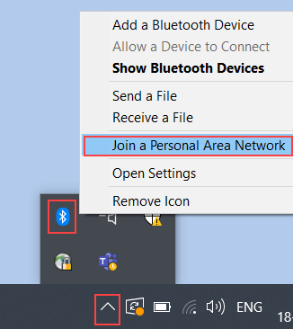 1. On the Windows® taskbar, click the Bluetooth® icon and then select Join a Personal Area Network.