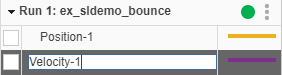 You can also rename the signals. For example, rename the signals in the first run to Position-1 and Velocity - 1. To rename a signal, double-click the name in the table and enter a new name.