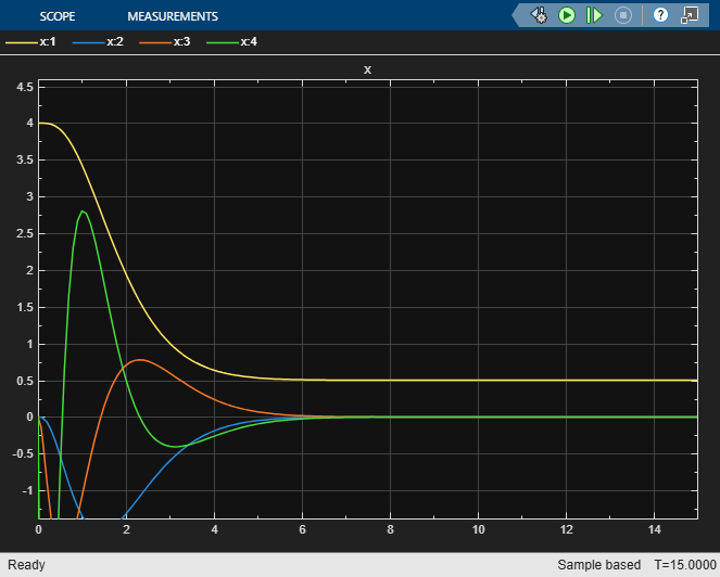 K = place(A,B,p);Simulate the model with the baseline controller.