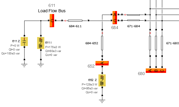 • Unbalanced load flow applied to a mix of three-phase, two-phase, and single-phase systems. Individual phase voltage and PQ flow are computed for each phase.