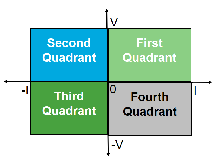 Converters operate in one or more of these quadrants depending on the application requirements. For example, a nonsynchronous buck converter operates only in the first quadrant, while a fully-controlled converter like a four-quadrant chopper can operate in all four quadrants, providing full control over the direction and magnitude of power flow.