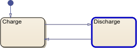 Para modelar estos requisitos, se crea un gráfico que contiene dos estados, Charge y Discharge, que representan los modos de funcionamiento del sistema de baterías.
