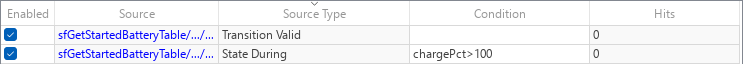 Chargestate, right-click any row in the If column and select Set Breakpoints > When Transition Is Valid. A breakpoint badge