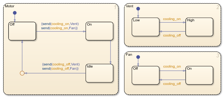 Durante la simulación, los gráficos de Stateflow® pueden detectar transmisiones de eventos locales no dirigidas. Para controlar el grado de acción de diagnóstico, abra el cuadro de diálogo Configuration Parameters y, en el panel Diagnostics > Stateflow, establezca el parámetro Undirected event broadcasts en none, warning o error. El ajuste predeterminado es warning. Para obtener más información, consulte Undirected event broadcasts (Simulink).
