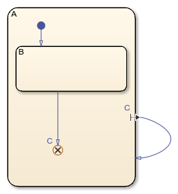 La recursión puede ser útil para controlar transiciones de subestado entre estados paralelos en el mismo nivel de la jerarquía del gráfico. Por ejemplo, puede enviar la transmisión de un evento dirigida desde un estado paralelo a un estado paralelo afín para especificar una transición de subestado. Este tipo de comportamiento recurrente es conveniente y eficiente. Para obtener más información, consulte Broadcast Local Events to Synchronize Parallel States.