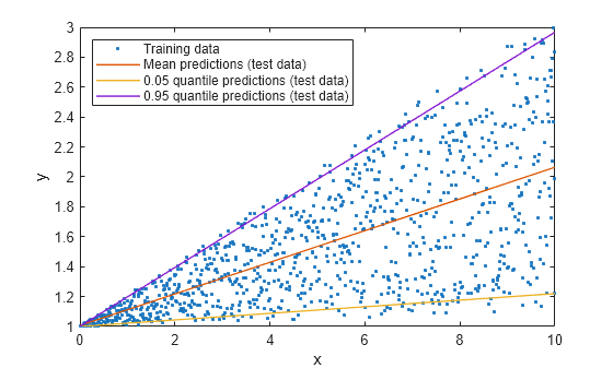 quantileMdl = fitrqlinear(x,y,Quantiles=[0.05 0.95]);